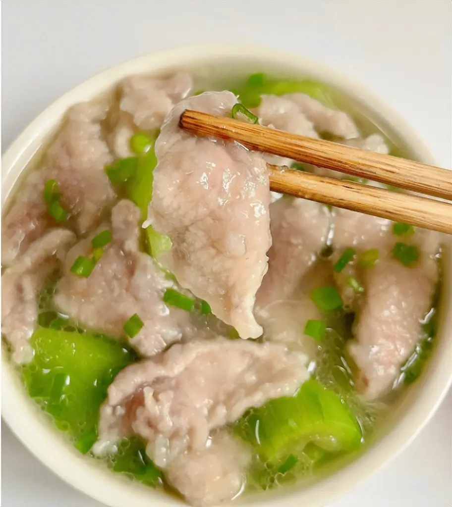 6. 加入猪肉:将焯过水的猪肉片放入汤中,继续炖煮10分钟,直至猪肉变嫩,汤汁更为浓郁。