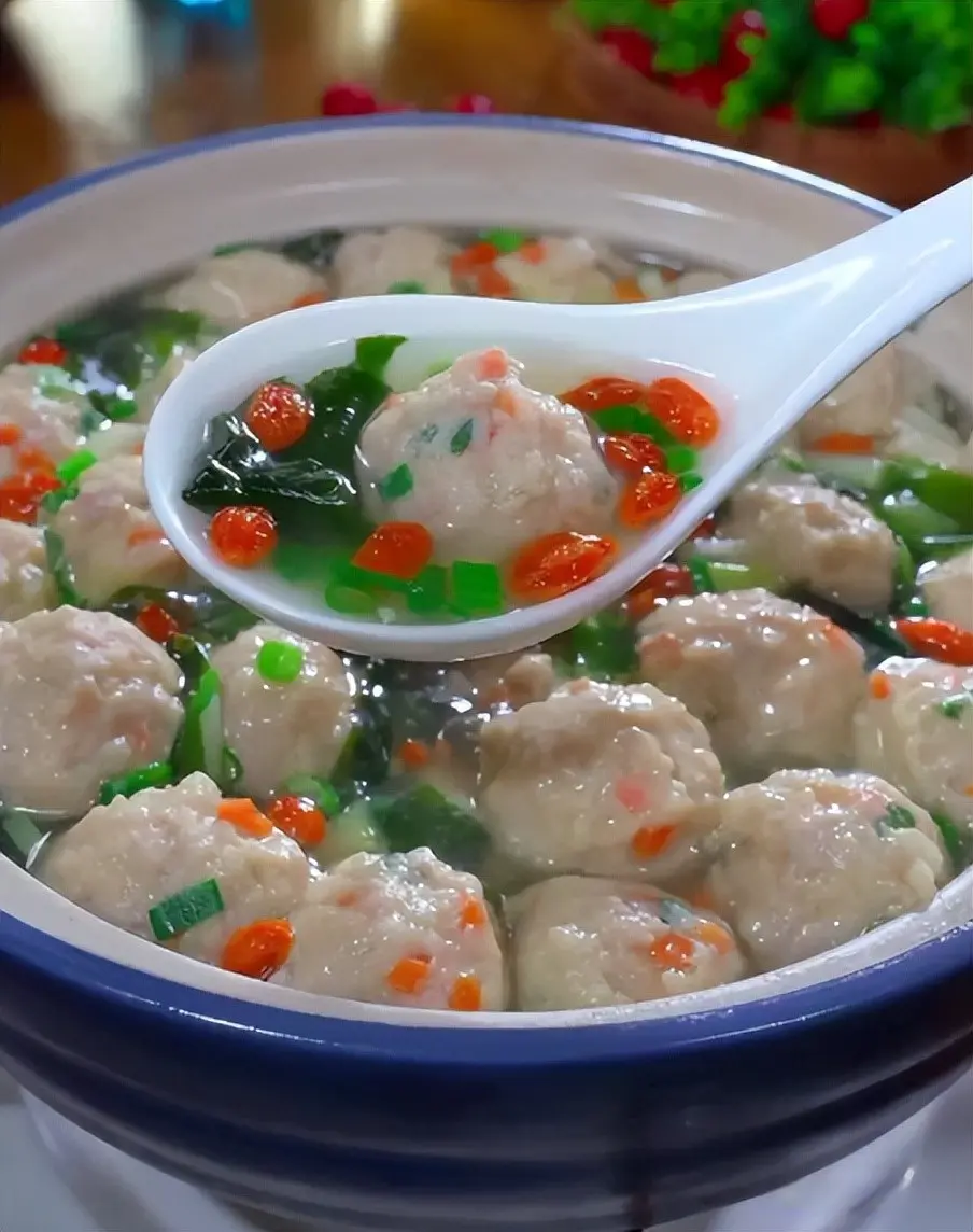 6. 合并煮制:将煮熟的肉丸和汤一起放入炖好的山药汤中,再炖煮10-15分钟,让肉丸和山药的味道相互融合。